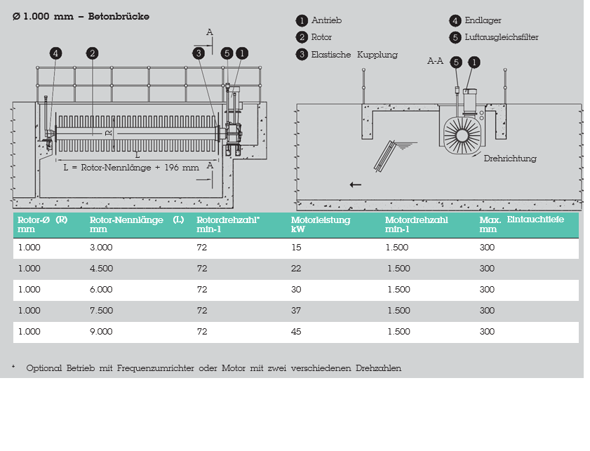 Der Mammutrotor® ist ein horizontalachsiger Oberflächenbelüfter zum Sauerstoffeintrag in der biologischen Abwasserreinigung.