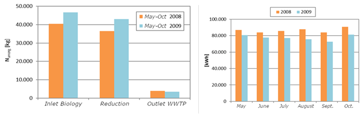 - Reduction of the total energy consumption of the wastewater treatment plant by 10 %