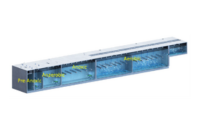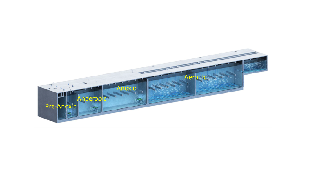 In the first modernization step, two times six sewage lines will be renewed. The lines operate with upstream denitrification. By evaluating several ammonium/nitrate and oxygen measurements, the aeration, recirculation, and return sludge are controlled by Aqualogic®.