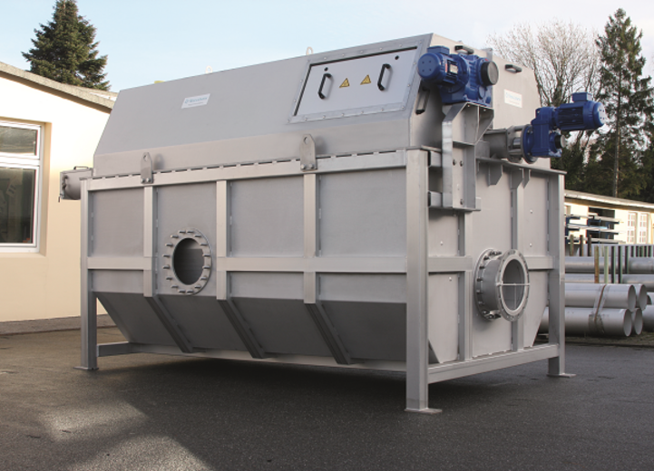 Depending on the product version, the cleaning water and screenings are discharged from the drum via the internal dirty water flume, a screenings press or a spiral conveyor. Installation can be in a concrete chamber or in a steel or plastic casing.