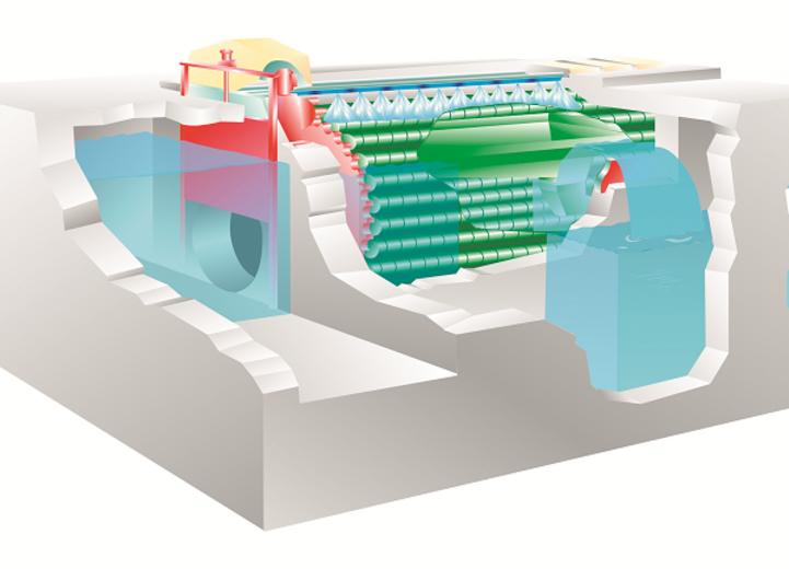 For use in municipal wastewater technology, the microscreen drum system (CarbonExtract®) represents an effective and very economical alternative to conventional screening and primary clarification systems. The heart of the Noggerath® Drum Screens RSH-M / RSH-MG is formed by a rotating drum consisting of sieve baskets mounted to each other.